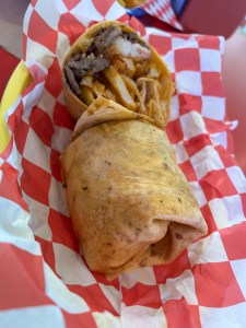The Tiki Taco Surf & Turf Burrito, not 3D printed. Photo by the author, 2024