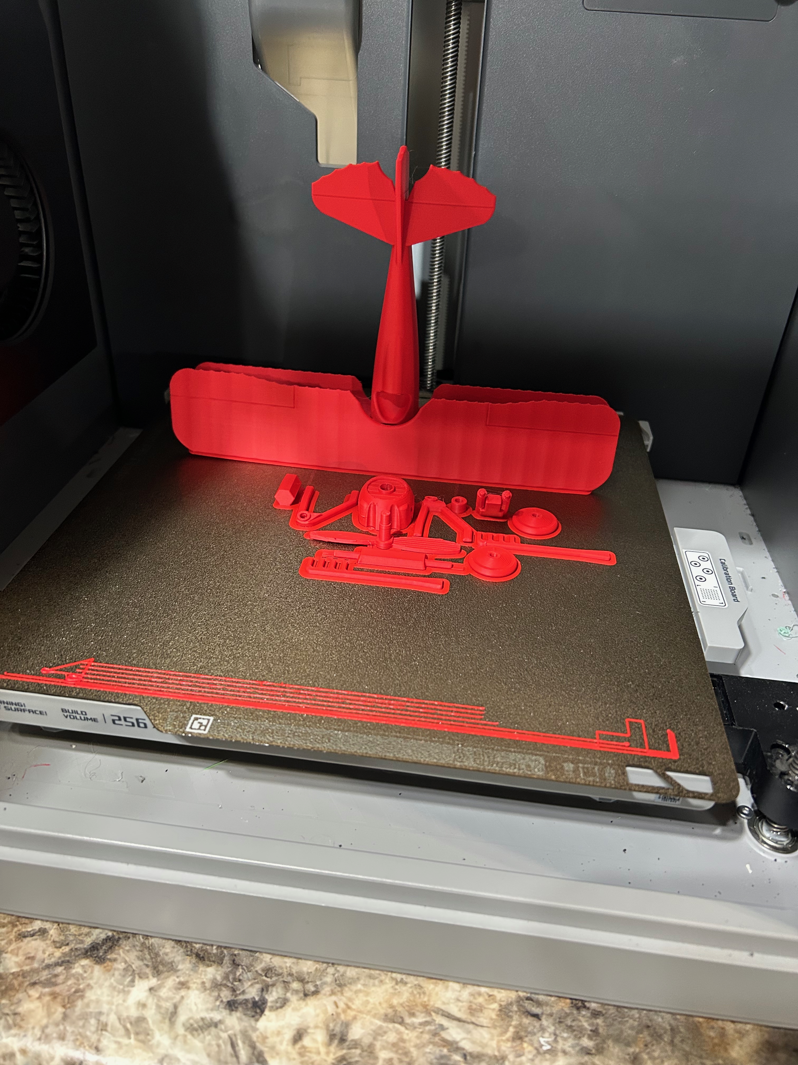The Red Baron biplane as it appeared when it finished printing. Some assembly required. Photo by the author, 2024.