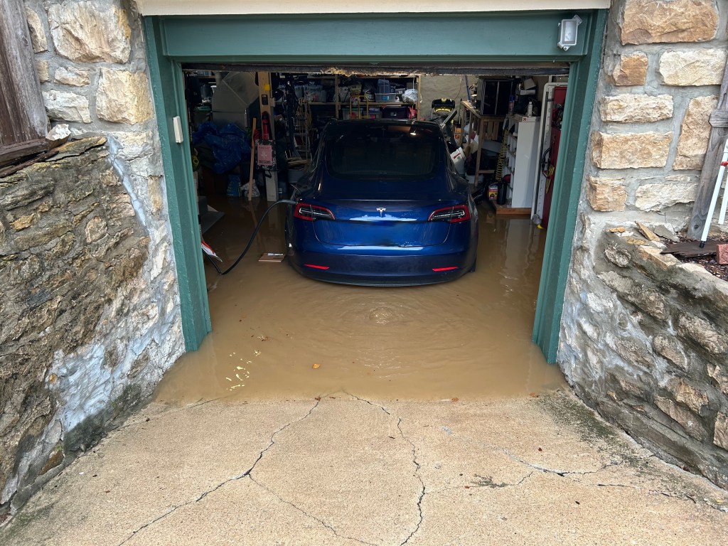 Our garage tends to flood anytime there’s a heavy rain, but it will barely be enough water to cover the soles of our boots. Still, it’s often enough water to require work cleaning up the mess. We live in an old house; it’s century mark will come in two years, and the stone walls of our basement garage, common for houses here in Kansas City built through the middle of the last century, tend to seep water when it rains like that. This time though, there was something different about the water that I saw, for it could not have rained so much as to produce a flood some 8 inches deep to the point that the car charging in our basement was partially submerged. I shouted to my Mom, who was finishing her lunch as we prepared to go out for the afternoon, and she came over to me quickly at the sound of concern in my voice. The sight of it all gave me a sort of thrill at first, as I thought about how dramatic this all looked.