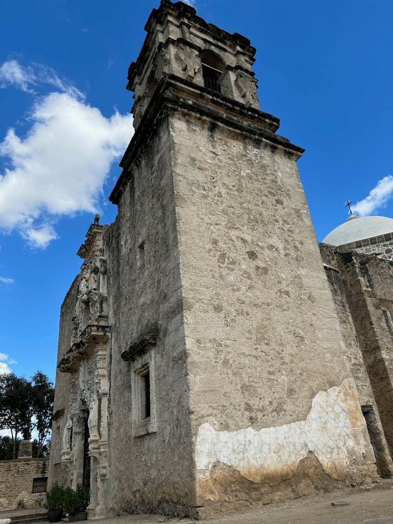 These four: Missions Concepción, San José, San Juan Capistrano, and San Francisco de la Espada brought the deep colonial history of this part of South Texas into focus. The tour guide explained that the Spanish decided to establish missions in Texas starting in 1715 in order to block French expansion from their new colony of Louisiane to the east along the Mississippi River. This was a full 200 years after the first Spanish conquistadores ventured north into Texas from their Viceroyalty of New Spain centered around Mexico City. The Franciscan missionaries who were sent north in the eighteenth century came from the Mexican city of Querétaro, some 740 miles (1,191 km) south by foot. Along with them came groups of colonists from the Canary Islands who were sent to establish a Hispanic presence around these missions alongside the majority indigenous population. The story of the Spanish colonization of Texas is a mixed one of both the story of the creation of a new ethnicity in the Tejanos, descendants of the Canarians and other Spanish colonists and the indigenous Texans including the Coahuiltecans, Payaya, and Pastia. Yet the other side of this story is the forced assimilation of these indigenous peoples to a new colonial way of life centered on the missions and their Catholic faith.
