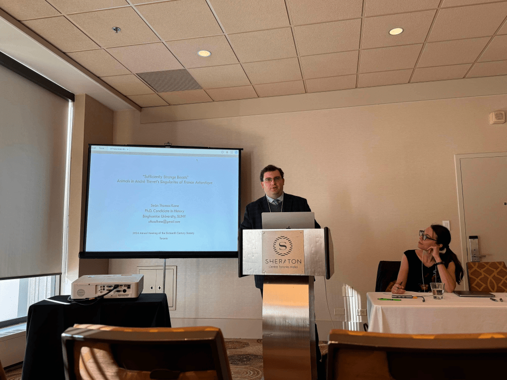 I traveled to Toronto to participate in the annual meeting of the Sixteenth Century Society (SCS), the one conference that I’ve attended year in and year out the longest. My first trip to the SCS was in 2019 when we met in St. Louis. That was also the last conference where I presented research derived from my History Master’s thesis written at the University of Missouri-Kansas City (UMKC). This time, I was presenting a very similar paper to the one I’d presented in San Antonio, only instead of looking at Amazonia and Patagonia I turned to specific animals which Thevet described in his Singularites that he himself did not see and try to trace the origins of what he wrote.