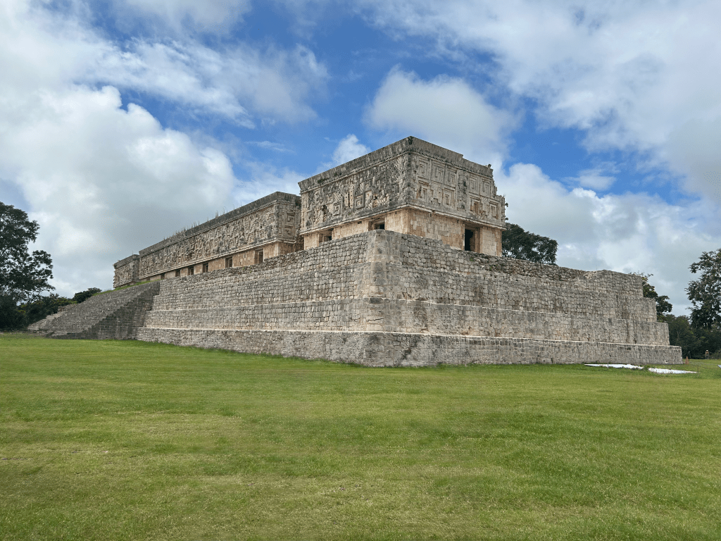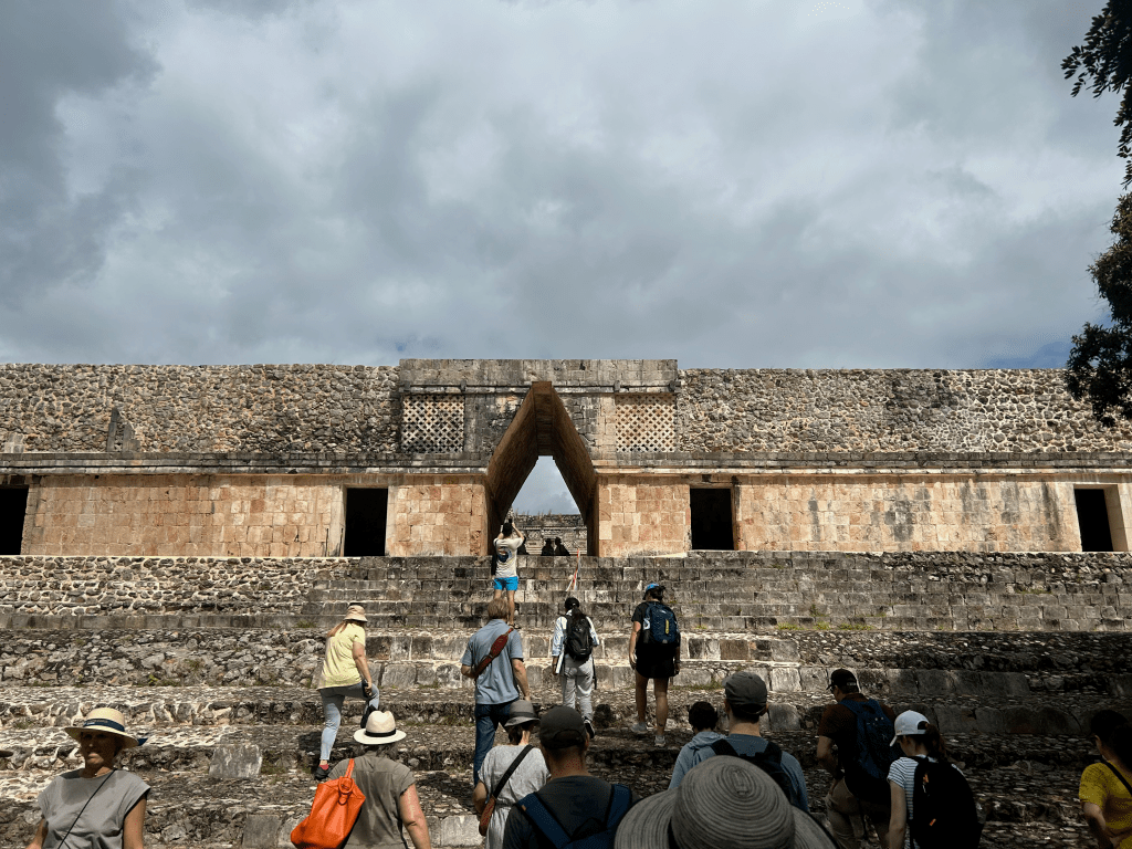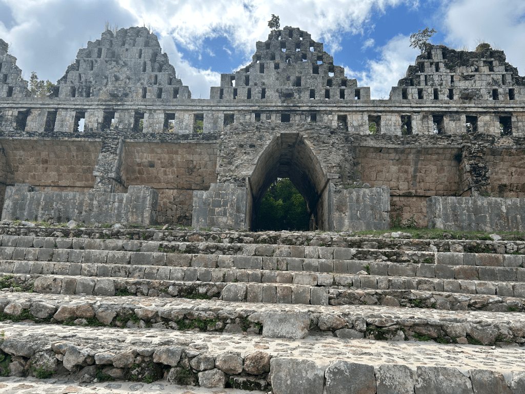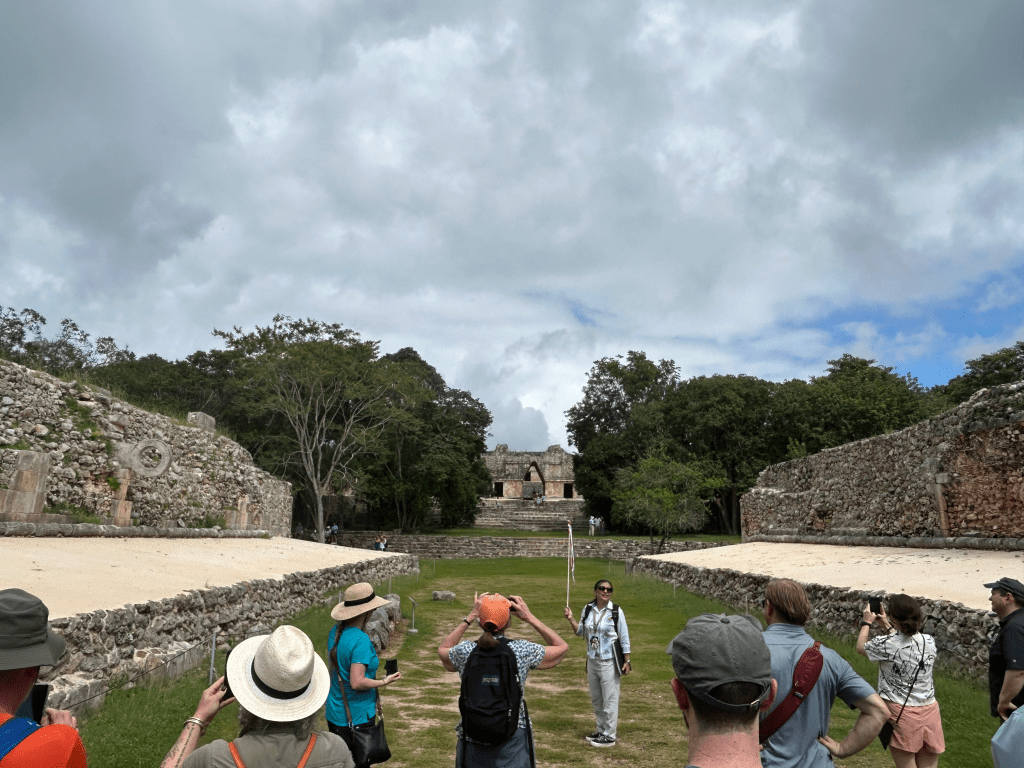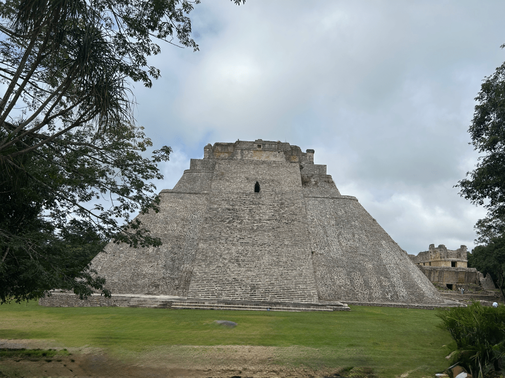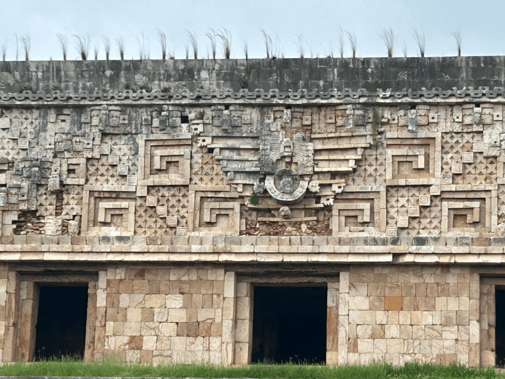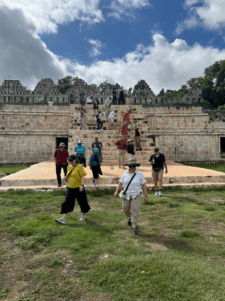 South of Mérida, Uxmal was a fascinating place to visit. This city once housed around 30,000 people, and its pyramids still rise above the jungle canopy. It was all that I hoped it would be and more, a monument to the ancestors of the people of the Yucatec Mayans who are still the majority population in the Yucatán State and in Mérida, its capital. The tour started with the Pyramid of the Magician, the great central monument of the site, after which we walked past the Palace of the Governors, and then to the High Pyramid and the South Pyramid before descending down the steps of the latter and walking to the Ballcourt dedicated in the year 901 CE by the city’s king Chan Chak K’ak’nal Ajaw where the old Mesoamerican ballgame was played. The pyramids here have a rounder shape than those at Chichen Itza, and the Pyramid of the Magician seems to be a series of temples built one atop the other.
