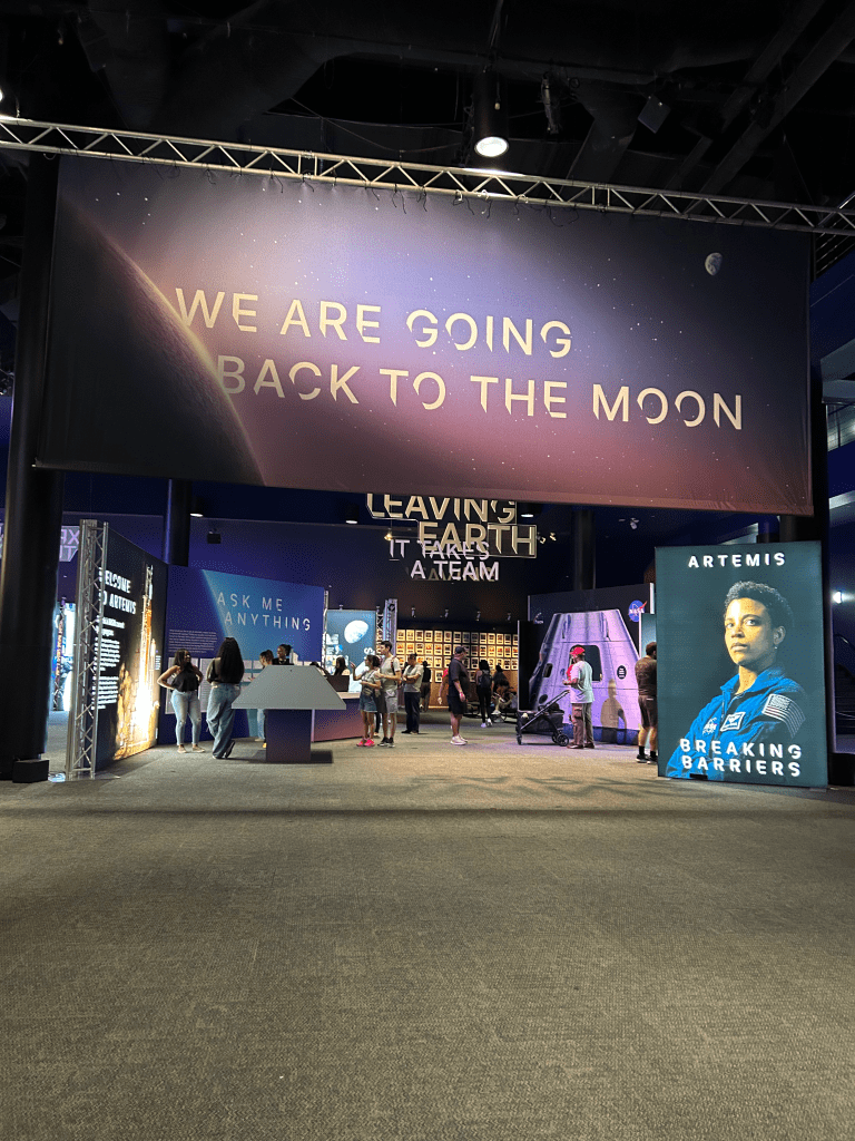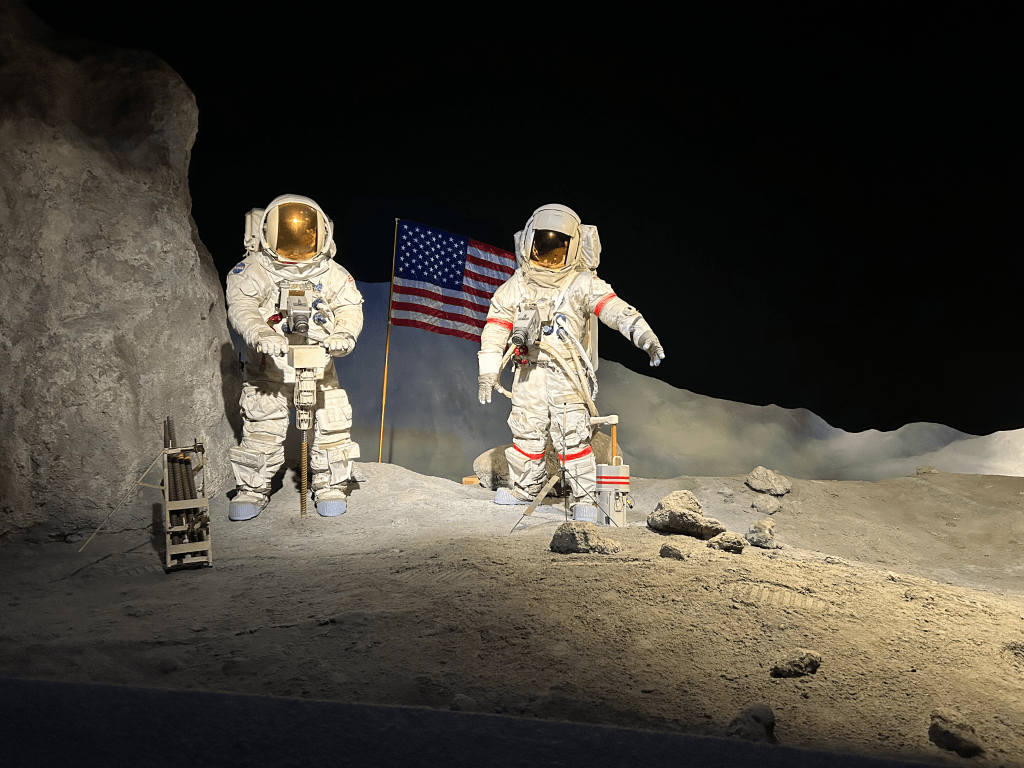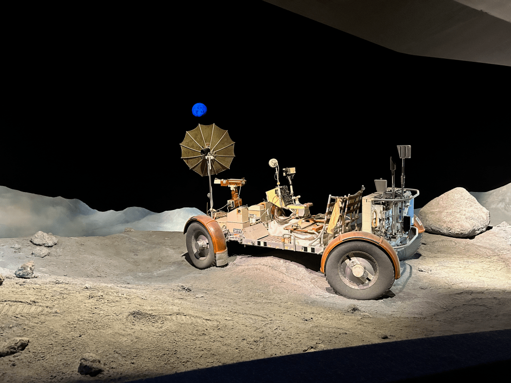 I arrived close to 12:30, a good 2 hours after landing, and was at first taken aback by just how busy the place was for a Sunday at midday. One part of that was that the Houston Texans weren’t playing until later in the day, which meant more locals and tourists for the visiting Detroit Lions were taking the midday hours to do some sightseeing. My first stop in the Space Center was the Artemis gallery displaying all things associated with NASA’s international program to return humans to the Moon for the first time since Apollo 17 landed in December 1972, almost 20 years to the day before I was born. There was a board where NASA invited members of the public to leave questions for the Artemis II astronauts, who are due to launch for the first crewed lunar orbit of the program no earlier than September 2025. I usually avoid these sorts of things, in a similar vein to why I like to avoid clicking on the ads on Google or any of my social media sites solely out of the enjoyment at seeing the big guy not getting my vote by engaging with their stuff. This time though was different, because as I’ve written before here on The Wednesday Blog, I worry that we may be going to Space for the wrong reasons: for profit, or glory, or conquest rather than for curiosity, or exploration, or hope that we might learn more about ourselves in finding what’s out there. My question then was this:
