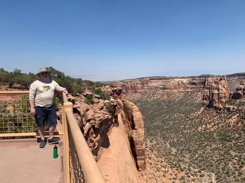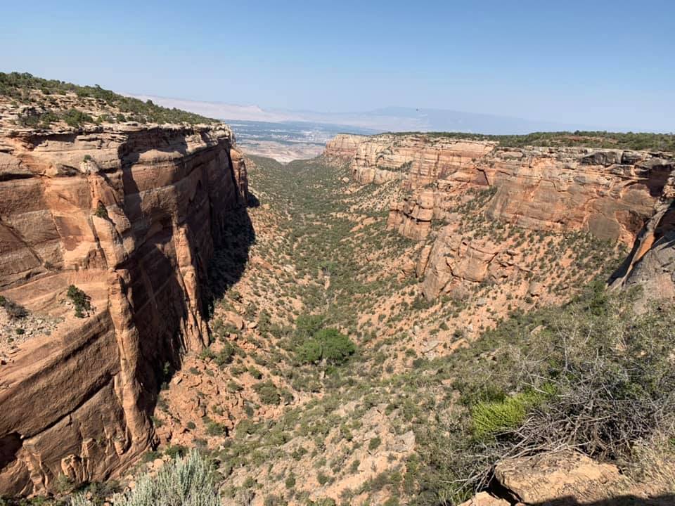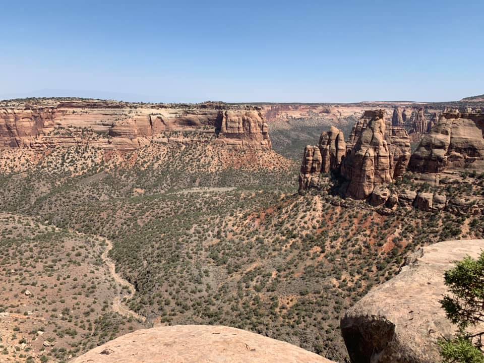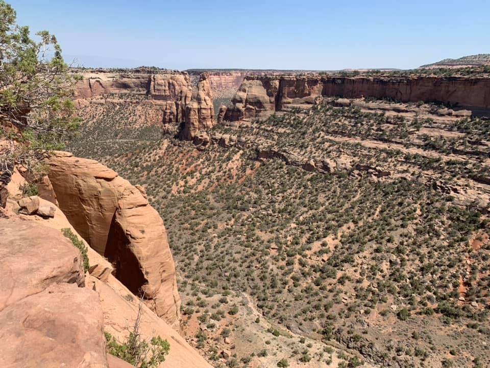 At the monument’s main visitors’ center we stopped and went for a mile hike out on the cliff edge, stopping at various points to look over the precipice at the deep canyon below. Years ago, my parents had bought a photo print of Colorado National Monument with the mesas to the north behind Grand Junction. That image had been up on the wall for most of my life, first in their house in Wheaton, then on the farm in Kansas City, KS, and now in their current house in Kansas City, MO. Only recently had it come down for whatever reason, yet as we made our way through that monument, we kept looking for that view that was in the picture. Surely it’d be out there somewhere. Whether we found it or not remains to be seen, but certainly of the places we’ve visited on this trip, Colorado National Monument will be one that we’ll return to.
