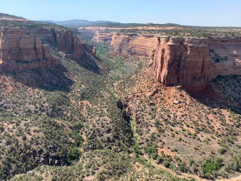 After a good two hours of driving from Steamboat Springs, we began to see roads and features shown on the official National Parks Service map of Dino as we’ve come to call that national monument. Soon, we came to the main road leading into the park’s Colorado side, and decided to go exploring and see what we could see. The road itself is 31 miles (50 km) long, and rises up to a point where I’m told you can see the confluence of the Yampa and Green Rivers and their respective canyons. While we didn’t make it quite to the end of the road, we did see some awe inspiring canyons and buttes rising and falling to the rim of the Unita Mountains to the north. I’d wondered if I might have flown over these very canyons before, on a 2018 flight from Oakland to Kansas City, something which may very well be possible considering the more recent flights undertaken on that route.